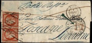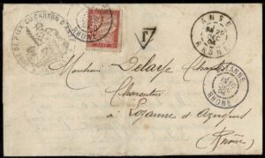 DESCRIÇÃO:FRANÇA - HISTÓRIA POSTAL - Ano 1851 - Sobrecarta completa circulada para a Itália, com chegada. Carimbos e marcas à estudar. Porteado...