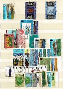 DESCRIÇÃO:◉ GUERNSEY - Folhas de classificador com 225 selos DIFERENTES e ordenados. Entre décadas de 70 e 90. Incluso alguns de Alderney....