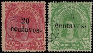 DESCRIÇÃO:GUATEMALA * Yvert 92a e 114 - Ambos com a mesma variedade: SOBRECARGA INVERTIDA...