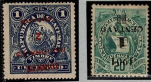 DESCRIÇÃO:GUATEMALA (*) Yvert 138a e 138b - Os 2 com variedades na sobrecarga: DUPLA e INVERTIDA - 75 Euros...