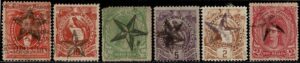 DESCRIÇÃO:GUATEMALA ◉ CARIMBOLOGIA - 6 diferentes selos clássicos (século 19) com carimbo em forma de estrela. Maioria perfeitos....