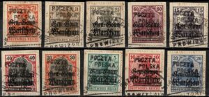 DESCRIÇÃO:◉ GRODZISK (Polônia local – 1ª Guerra) – Série completa de 10 valores, sobre fragmento. Vide catálogo Michel Europa do Leste –...