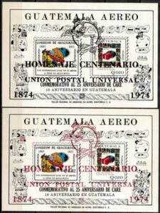 DESCRIÇÃO:(*) GUATEMALA - Blocos Michel 16a e 16b (Sobrecarga preta e vermelha) tema UPU. Emitidos sem goma. Não constam do Yvert. Alguns...