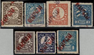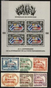 DESCRIÇÃO:HONDURAS ◉/* Variedades na Sobreestampa: 7 selos diferentes e com a SOBREESTAMPA INVERTIDA entre nº Yvert 209 e 218...