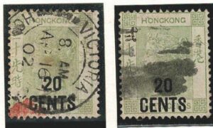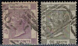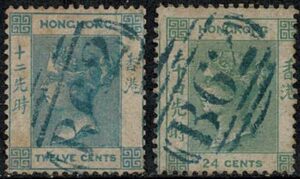 DESCRIÇÃO:HONG KONG ◉ Yvert 3 e 5 - Ambos com carimbo em azul "B62" - 205 Euros...