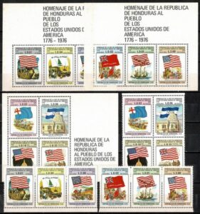 DESCRIÇÃO:** HONDURAS - Aéreos 563/72 Blocos 24/26 - 38 Euros. Temática Bandeiras....