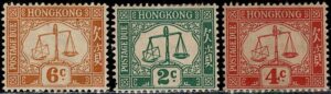 DESCRIÇÃO:◉/(*) HONG KONG - Fiscal Postal 6 - Três exemplares: Novo sem goma com carimbos: Circular quase 100% e vermelho com cercadura...