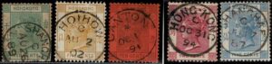 DESCRIÇÃO:HONG KONG ◉ CARIMBOLOGIA - 5 diferentes selos clássicos com carimbos. Nº 33 (Hong Kong) 37 (Shanghai) 38 (Hoihow) 40 (Shanghai) e...