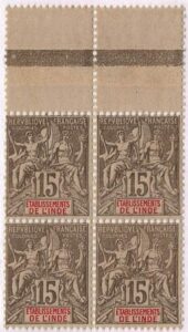 DESCRIÇÃO:** INDIA FRANCESA - 15 - Bela quadra absolutamente ** com goma plena sem marca de charneira e sem ferrugem - 140...