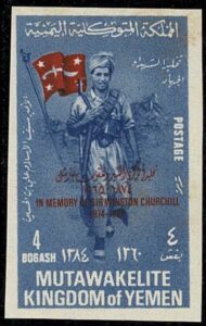 DESCRIÇÃO:* IEMEN - 166 - Sobreestampa vermelha e sem picote. Sem cotação no Yvert e marcando 120 Euros no catálogo Michel....