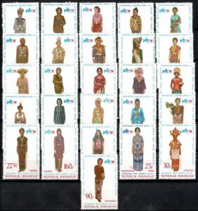 DESCRIÇÃO:* INDONÉSIA - 675/700 (Trajes Tipicos) - Série completa gomada, mas com mancha da tira do classificador. Vide imagem na web -...