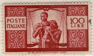 DESCRIÇÃO:(*) ITÁLIA - 503 (100Liras Democrática) Falha e mancha em 2 picotes no lado direito (150 Euros)....