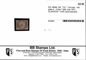 DESCRIÇÃO:INGLATERRA ◉ 49 - Plancha 4 - Carimbo Glasgow 25.7.1873. Selo no suporte onde foi comprado de firma Britânica....