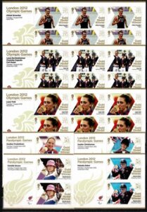 DESCRIÇÃO:INGLATERRA ** JOGOS OLIMPÍCOS/PARALIMPÍCOS ANO 2012 - Conjunto completo com 63 selos DIFERENTES, sendo 34 deles em PARES e 29 deles em...