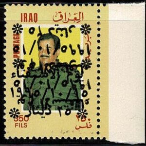 DESCRIÇÃO:IRAQUE ** Yvert 1378 (Sadan Houssein) Variedade: SOBRECARGA DUPLA, sendo uma invertida....
