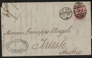 DESCRIÇÃO:INGLATERRA - HISTÓRIA POSTAL - Ano 1874 - Sobrecarta completa circulada para Trieste, com chegada. Selo Yv 51 (Plancha 15) com carimbo...