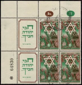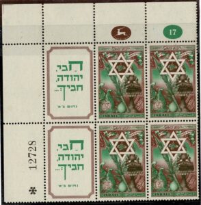 DESCRIÇÃO:◉ ISRAEL - 33 - Quadra, canto superior de folha, com 2 tab laterais, mas um deles com raspagem e não cotado...