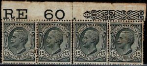 DESCRIÇÃO:* ITÁLIA - Sassone 108 l - Tira de 4 horizontal (aberta em 2 pares) com duplo picote horizontal superior - 480...
