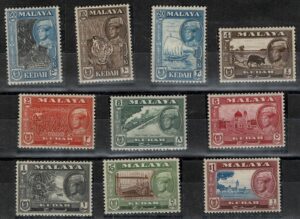 DESCRIÇÃO:KEDAH (Estado Malaio) - * Yvert 89/99 - Falta o nº 98, que é o selo do tema Esportes. Todos bem limpos...