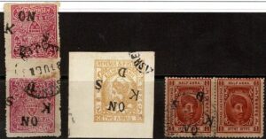 DESCRIÇÃO:KISHENGARH (Estado Principesco da India) - ◉ VARIEDADES NA SOBREESTAMPA - 3 diferentes selos do setor de Serviço, com variedade na sobreestampa:...