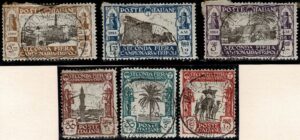 DESCRIÇÃO:LIBIA ITALIANA - * Sassone 81/86, Yvert Tripolitana 64/69 - No nº 85 - 1 dente tem ponto de ferrugem, demais limpos...