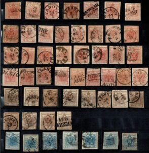 DESCRIÇÃO:LOMBARDO VENETO ◉ Antigo Estado Italiano - 1ª Série - Cartela com 51 selos entre selos Yvert 3/5 e assim dividido pelos...
