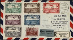 DESCRIÇÃO:LUXEMBRUGO - Ano 1939 - Envelope circulado para Nova York, a bordo do Clipper (Hidroavião) e porteado com a 1ª série aérea...