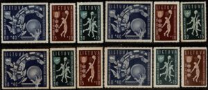 DESCRIÇÃO:LITHUANIA */(*) 370/372 (Basket) Lote com 4 séries completas, sendo uma sem goma e 3 gomadas - 130 Euros...