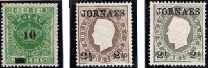 DESCRIÇÃO:(*) MACAU - 23, 43 e 44 - Todos picotes 13,5 e emitidos sem goma - 105 Euros no catálogo Michel....