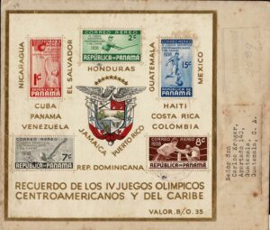 DESCRIÇÃO:PANAMÁ - Ano 1938 - Envelope registrado circulado para a Guatemala, com chegada e porteado com Bloco Yvert 1 - Pontos de...