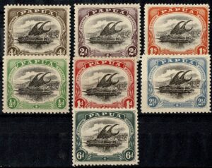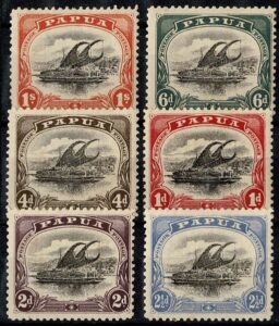 DESCRIÇÃO:PAPUA - * 33/39 - misto, nas 2 picotagens. 2 valores com falha na goma - 65 Euros......