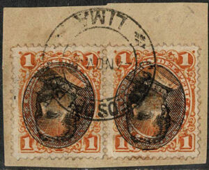DESCRIÇÃO:PERÚ ◉ Yvert 83 - Par horizontal sobre fragmento e com a SOBREESTAMPA INVERTIDA...
