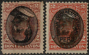 DESCRIÇÃO:PERÙ - (*)/* Yvert 85 e 90 - Ambos com a mesma Variedade: SOBREESTAMPA INVERTIDA .....