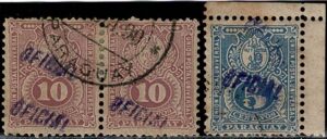 DESCRIÇÃO:PARAGUAI ◉ Variedades: Serviço 21 (sobreestampa dupla parcial - canto superior de folha) e 23 em par horizontal, ficando o selo esquerdo...