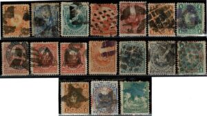 DESCRIÇÃO:PERÚ - ◉ CARIMBOLOGIA - Só carimbos mudos sobre selos clássicos (século 19) 17 carimbos, sendo 3 estrelas....