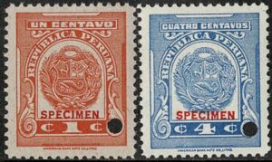 DESCRIÇÃO:PERÚ - **/* FISCAIS SPECIMEN - Coleção com 13 diferentes faciais, todos da mesma série. PROVAS da American Bank, com furo de...