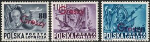 DESCRIÇÃO:* POLÔNIA - Aéreo 24/26 - Série completa com sobreestampa “Groszy” - 270 Euros....