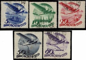 DESCRIÇÃO:RUSSIA - ◉ Aéreos 41/45 (B) com filigrana. Série completa usada /carimbada - 80 Euros.....