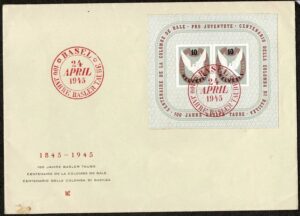 DESCRIÇÃO:SUIÇA - Ano 1945 - Fdc com carimbo comemorativo e Bloco Yvert 12 que usado marca 110 Euros....