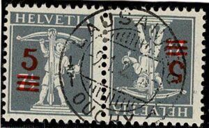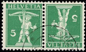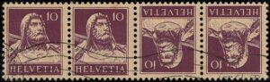 DESCRIÇÃO:** Suiça - Se Tenant Michel W1, S23x, S7 (1 dente com ferrugem) e S9 - Todos emissão Guilherme Tell - 70...
