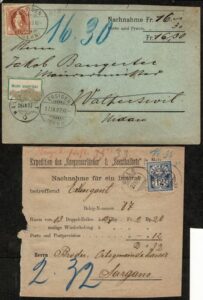 DESCRIÇÃO:SUÍÇA - HISTÓRIA POSTAL - 2 peças circuladas internamente com chegada: Ano 1894, cinta com selo Yvert 68 e comunicando o envio...