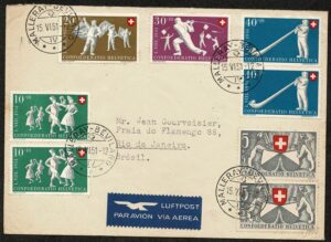 DESCRIÇÃO:SUÍÇA - HISTÓRIA POSTAL - Ano 1950 - 3 envelopes registrados circulados para o Rio de Janeiro (2 com chegada) e porteados...