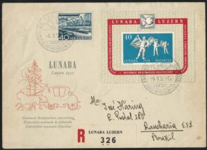 DESCRIÇÃO:SUÍÇA - HISTÓRIA POSTAL - Ano 1948 - Fdc registrado sem endereçamento, mas com a etiqueta alusiva. Bloco Yv 13 com carimbo...