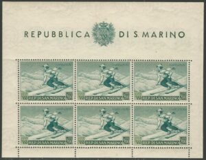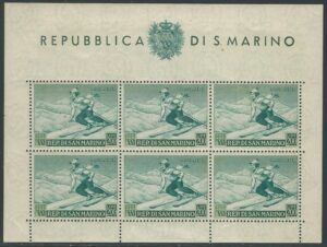 DESCRIÇÃO:**/* SÃO MARINO - Aéreo 100 (Esporte) Mini folha com 6 exemplares - 1.600 Euros pelo Sassone....