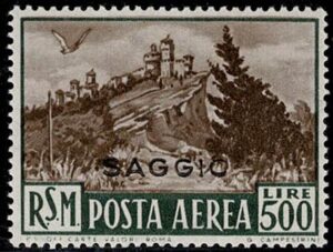 DESCRIÇÃO:SÃO MARINO ** Aéreo 86 com sobreestampa "SAGGIO" (Prova) Temática Aves. Qualidade e origem europeia...