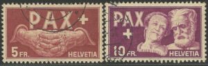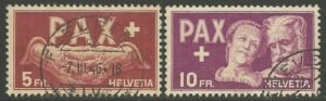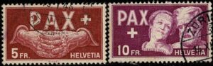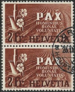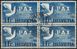 DESCRIÇÃO:◉ SUÍÇA - 254/58 (Paz) - 5 valores em quadra! com carimbo comum centrado....