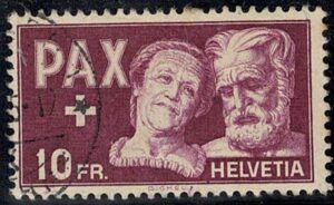 DESCRIÇÃO:SUÍÇA ◉ 413 - 1Fr Pax - Bela quadra com carimbo comum. Alguns pontos de ferrugem - 260 Euros ++...
