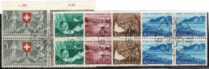 DESCRIÇÃO:◉ SUÍÇA - 616/620 (Pró Juventude) Série completa em quadras com carimbo comum....