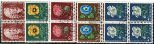 DESCRIÇÃO:◉ SUÍÇA - 590/594 (Pró Patria) Série completa em quadras com carimbo comemorativo alusivo. Ferrugem....