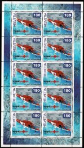 DESCRIÇÃO:** SUÍÇA - 1709 - Mini folha com 10 exemplares Holográficos - 18Sfr de facial....